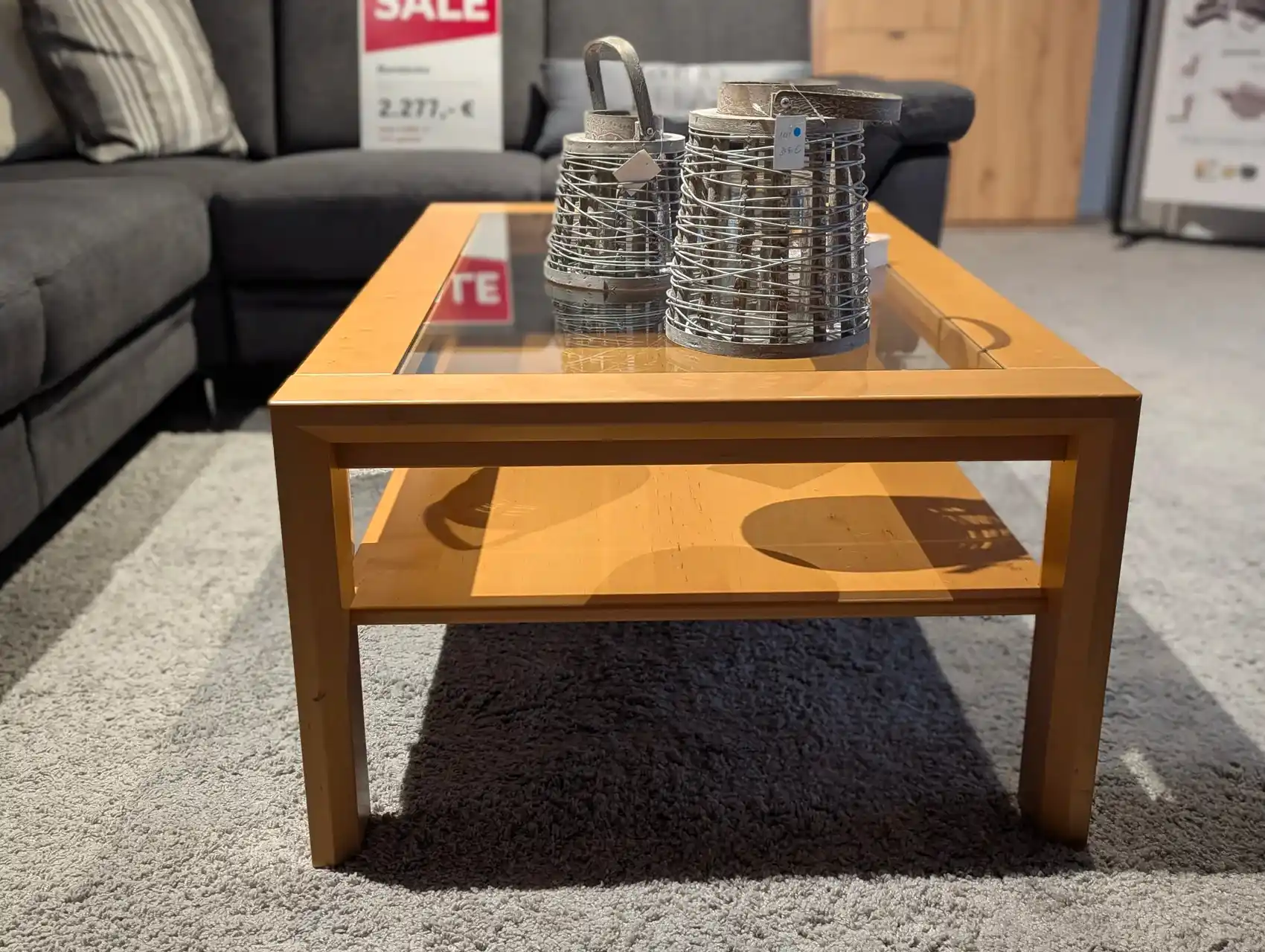 Dieser elegante Couchtisch aus Erle vereint natürliche Holzoptik mit klaren Linien und hoher Alltagstauglichkeit. Ideal als Ablagefläche für Dekoration, Getränke und Zeitschriften.