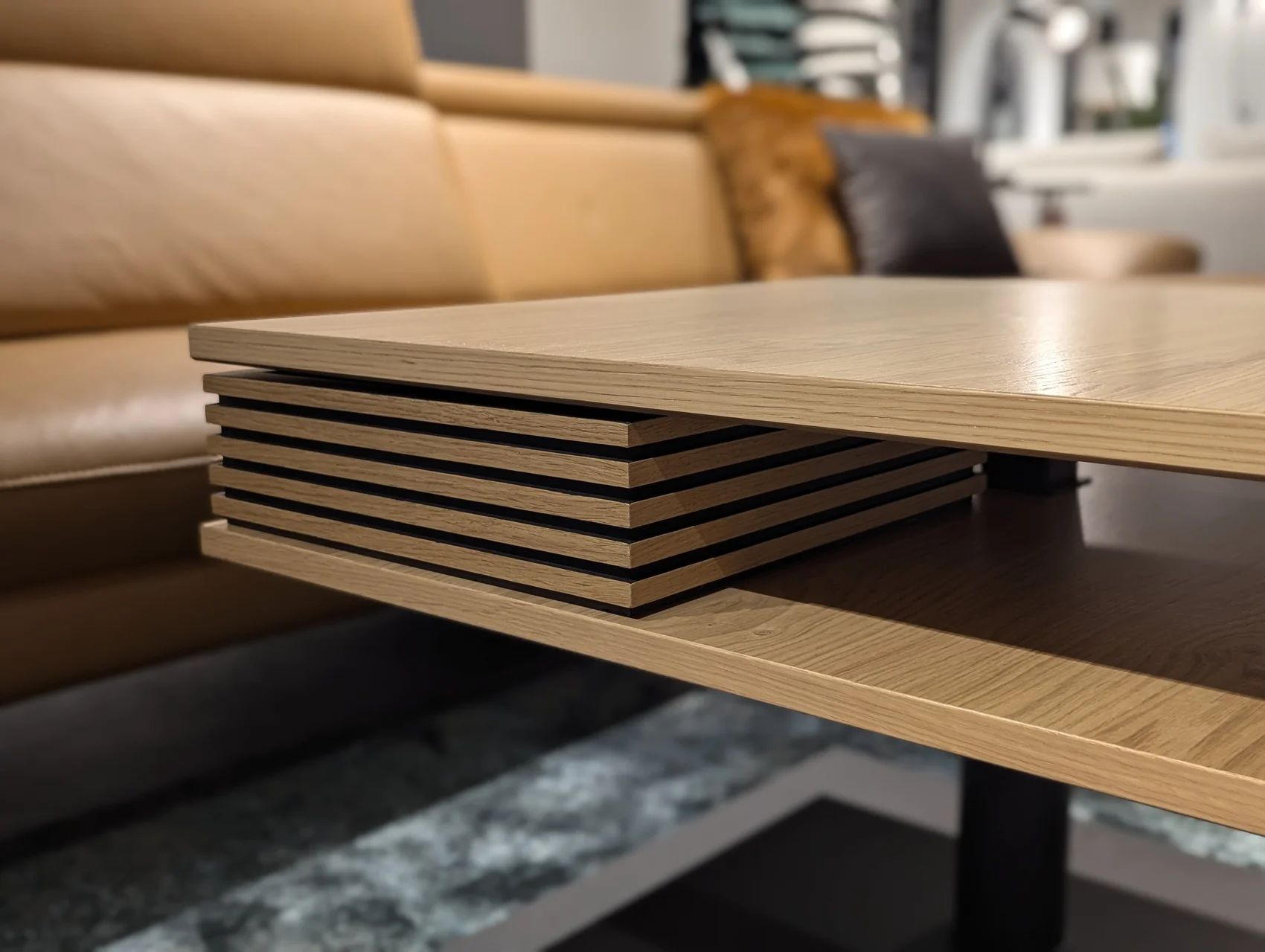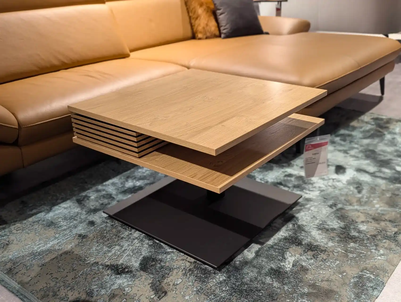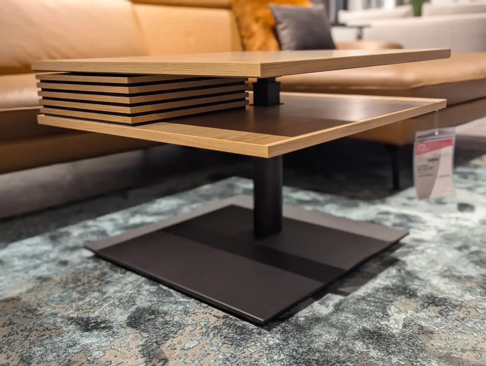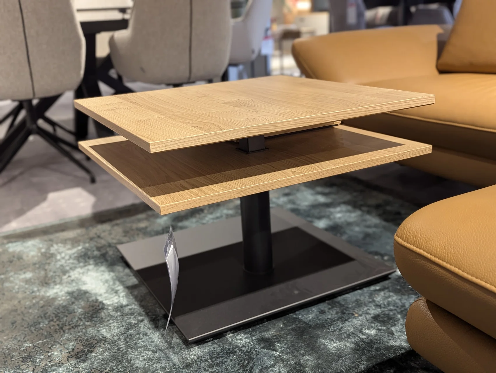 Couchtisch Wildeiche mit Liftfunktion – 70 × 70 × 49–67 cm