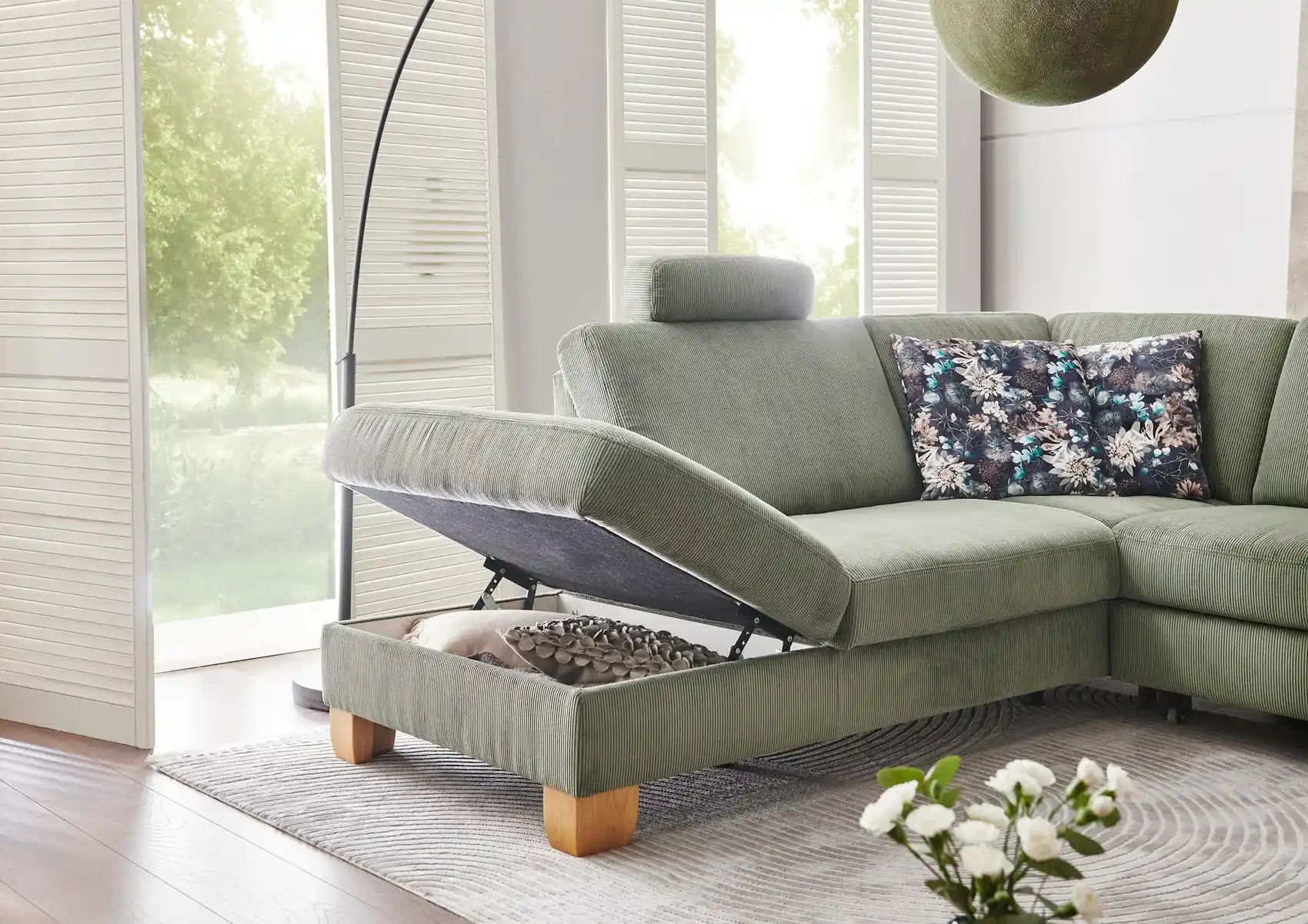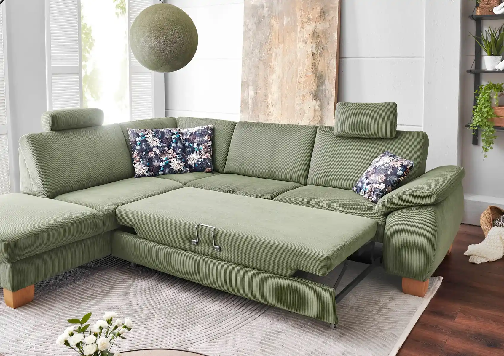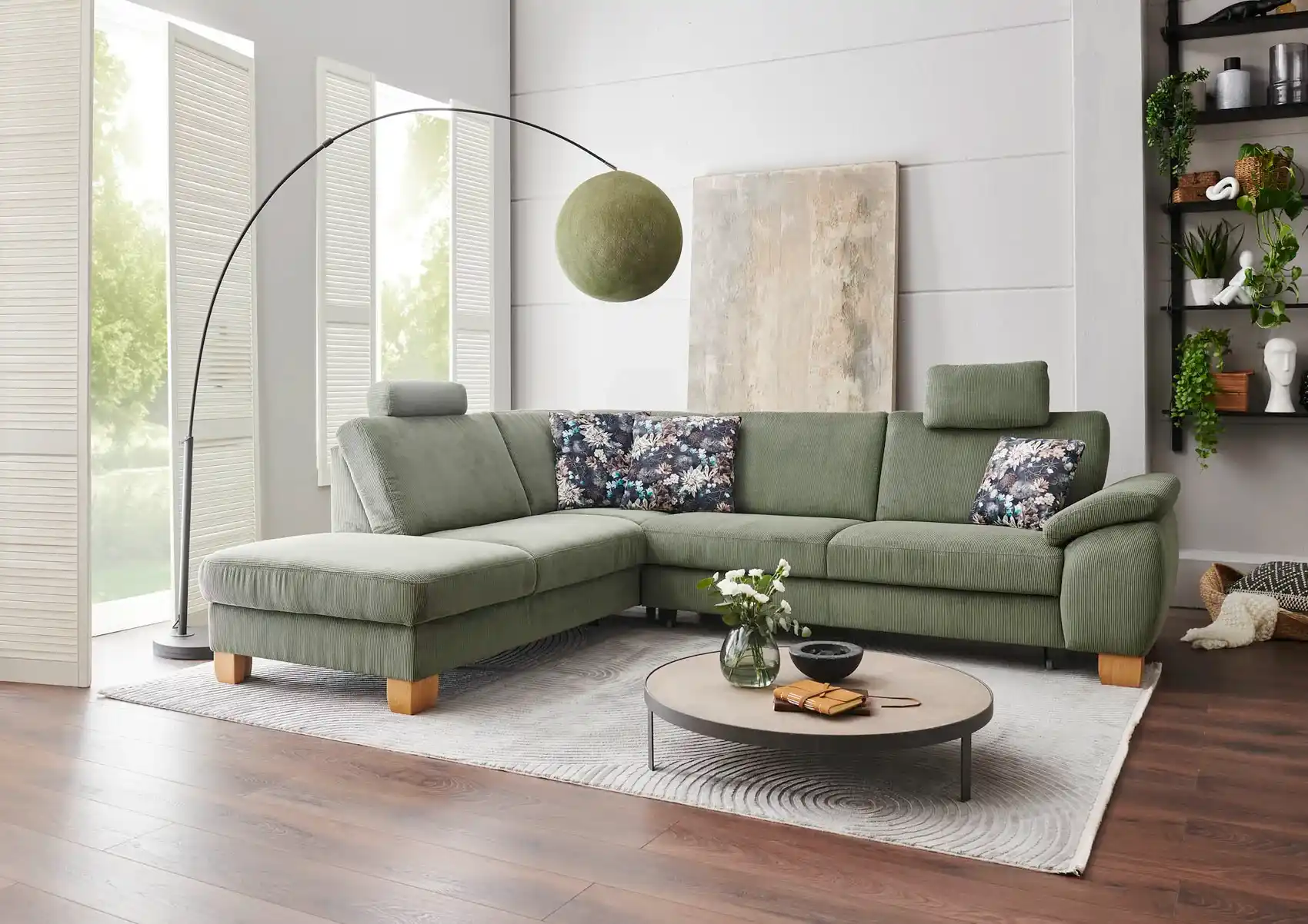 Dieses stilvolle Ecksofa in Feincord-Stoff (Farbe forest) begeistert mit hoher Verarbeitungsqualität, einem modernen Look und vielseitigen Konfigurationsmöglichkeiten. Mit seinem großzügigen Stellmaß von ca. 236 x 281 cm und seiner hochwertigen Ausstattung wird es zum neuen Lieblingsplatz in Ihrem Wohnzimmer. Mit diesem Ecksofa holen Sie sich nicht nur ein Möbelstück ins Haus, sondern ein echtes Wohlfühlhighlight.