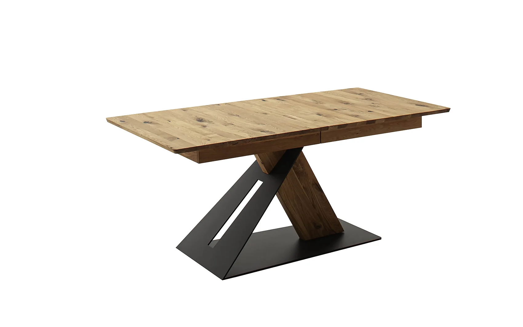 Das Design wird durch eine anthrazitfarbene, pulverbeschichtete Metallsäule und Bodenplatte vervollständigt, die nicht nur für Stabilität sorgen, sondern auch einen modernen Akzent setzen. Mit den Maßen von ca. 180 (230) x 77 x 90 cm passt dieser Esstisch perfekt in jeden Essbereich und wird zum Mittelpunkt Ihrer Einrichtung.