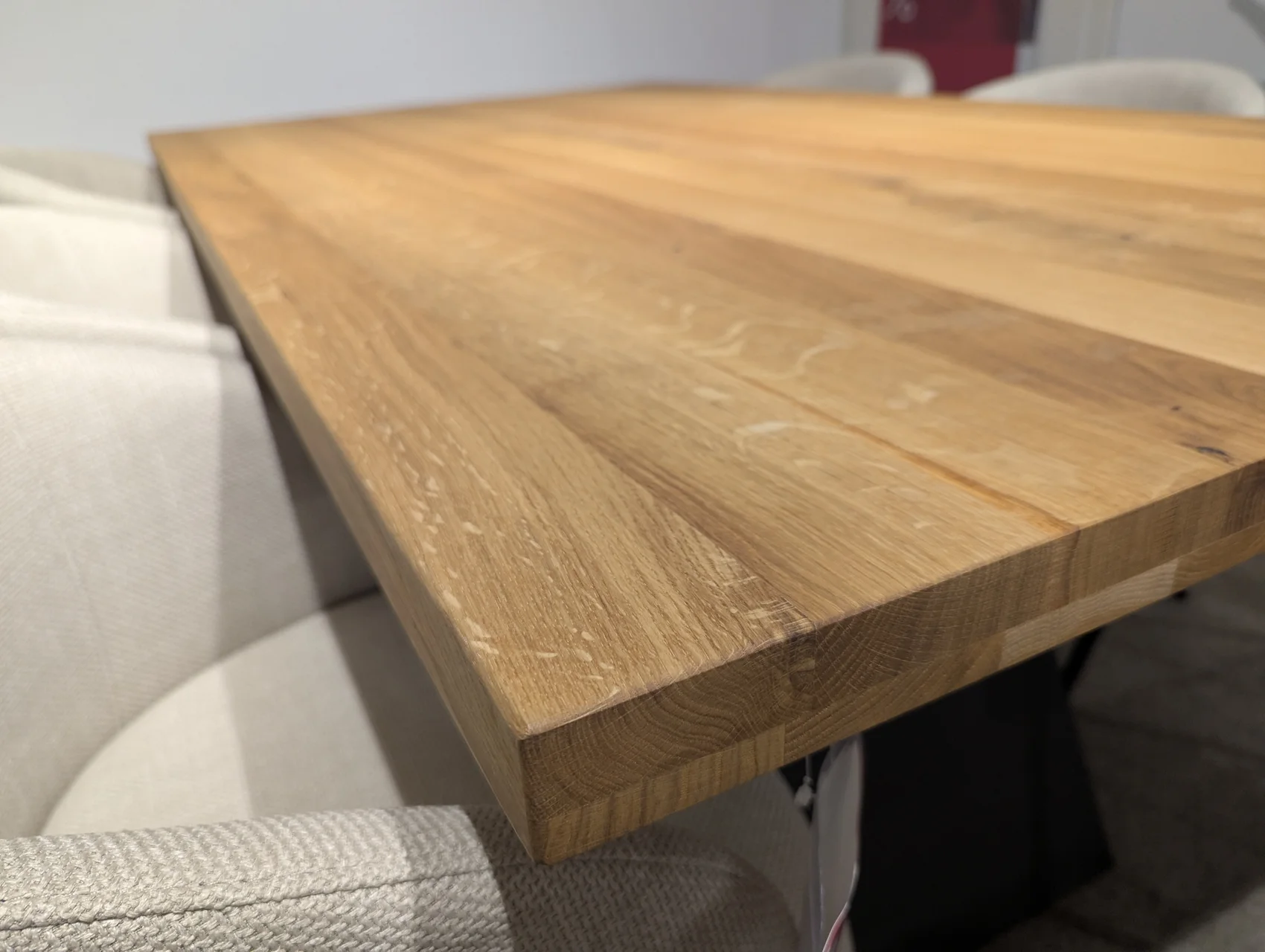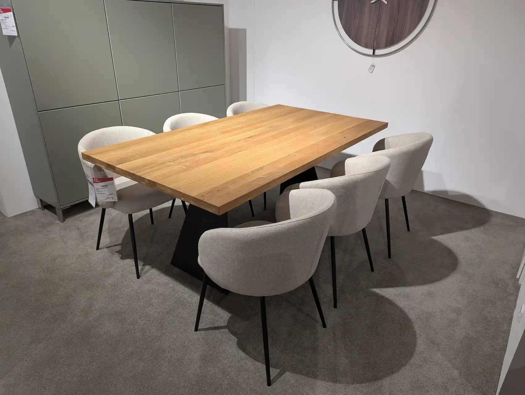 Dieser hochwertige Esstisch vereint natürliche Materialien mit modernem Design. Die Tischplatte aus massiver Wildeiche überzeugt durch ihre charaktervolle Maserung und sorgt für eine warme, einladende Atmosphäre im Essbereich. In Kombination mit dem stabilen Metallfuß entsteht ein stilvoller Kontrast, der sich ideal in moderne wie auch klassische Wohnkonzepte einfügt.