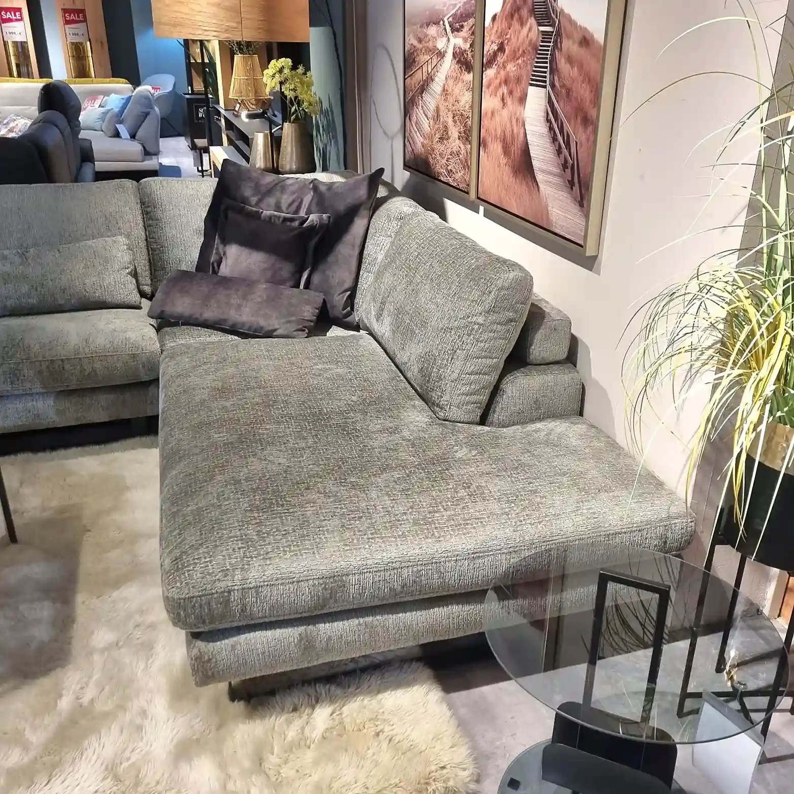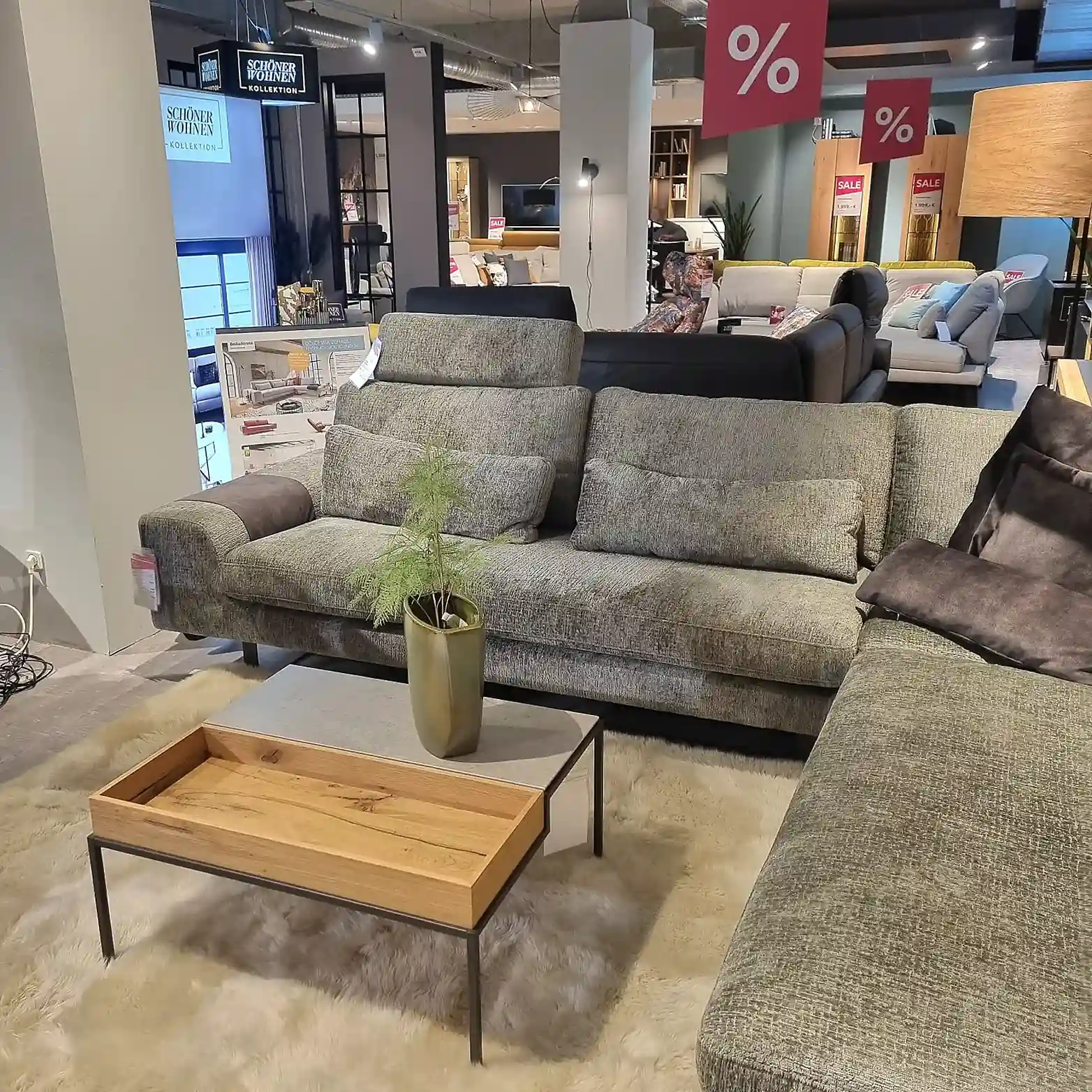 Entdecken Sie unser elegantes und komfortables Ecksofa. Das 2,5-sitzige Sofa (2501U) mit Armlehne links bietet Ihnen nicht nur gemütlichen Sitzplatz, sondern sorgt durch die angenehme Tiefe von 104 cm für entspanntes Sitzen. Der Bezug in Marconia 205 thyme (PG: IV) verleiht dem Sofa einen einzigartig modernen Touch. Genießen Sie erstklassigen Sitzkomfort dank der Sandwich-Polsterung. Die schwarzen MR2-Füße runden das stilvolle Design perfekt ab. Das Spitzeckteil klein (8020U0) bietet Ihnen flexible Sitzoptionen. Der 1-Sitzer mit Abschlussteil rechts (1093) bietet zusätzlichen Sitzplatz und harmoniert perfekt mit dem Rest des Ensembles. Die mitgelieferten Nierenkissen (998030) bieten zusätzlichen Komfort und eine gemütliche Atmosphäre. Genießen Sie vollständige Entspannung mit der verstellbaren Kopfstütze (902370) und erleben Sie Luxus und Komfort in Ihrem eigenen Zuhause.