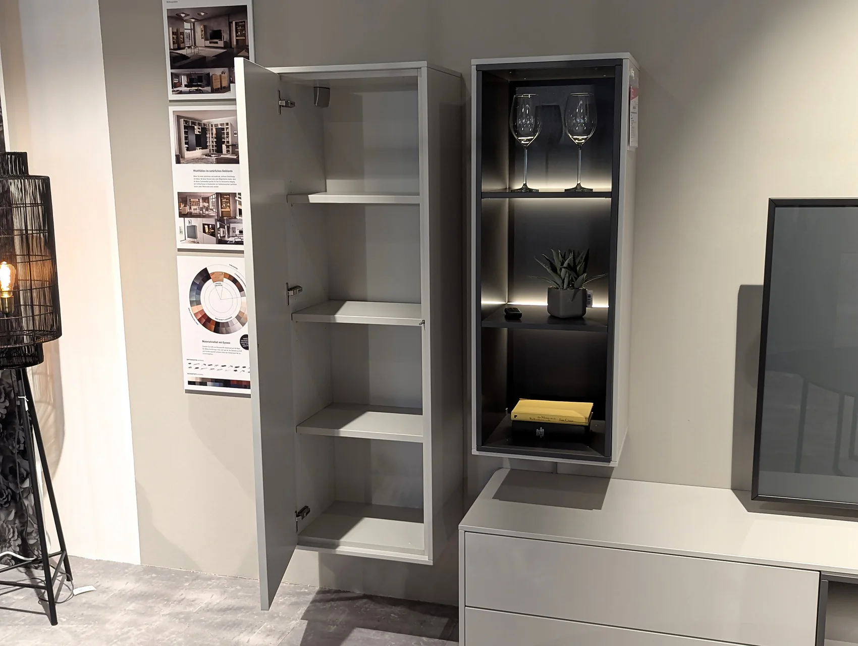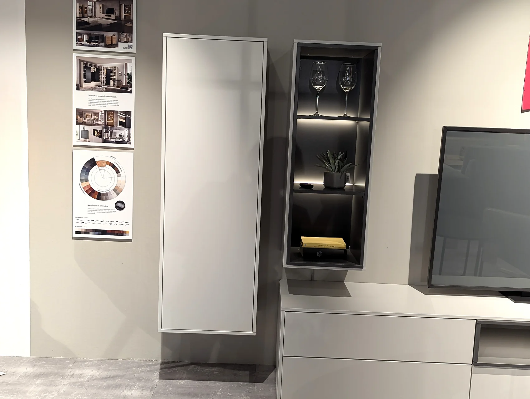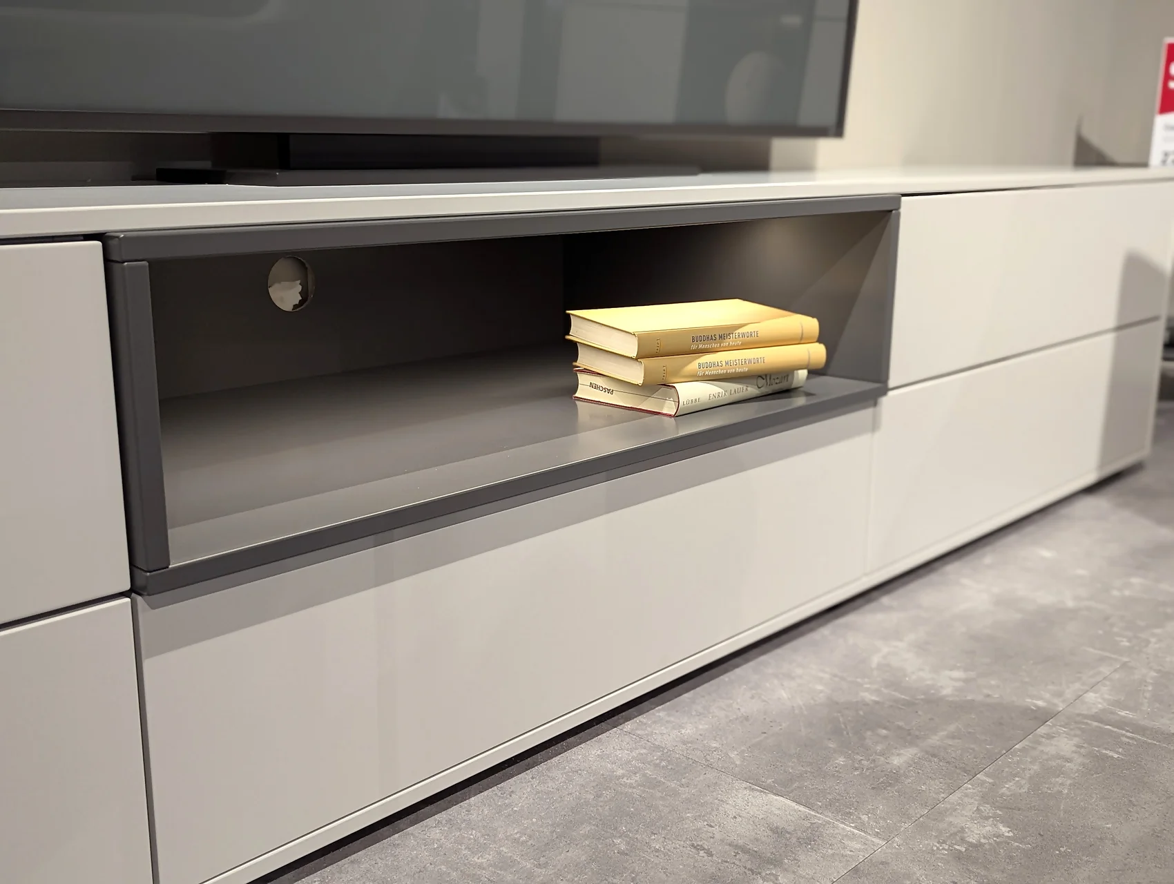✔ Moderne Kombination: Lack brillantgrau mit Klarglas