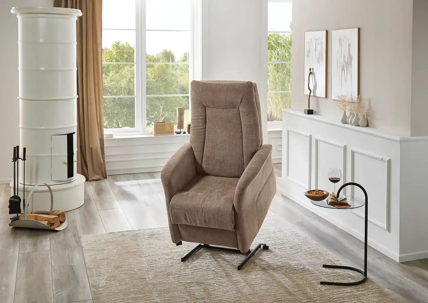 Komfortabler Relaxsessel mit Stoffbezug und echt bezogenem Rücken – ideal auch zur freien Platzierung im Raum. Der Sitzkomfort mit Federkern sorgt für eine angenehme Unterstützung und langlebige Formstabilität.