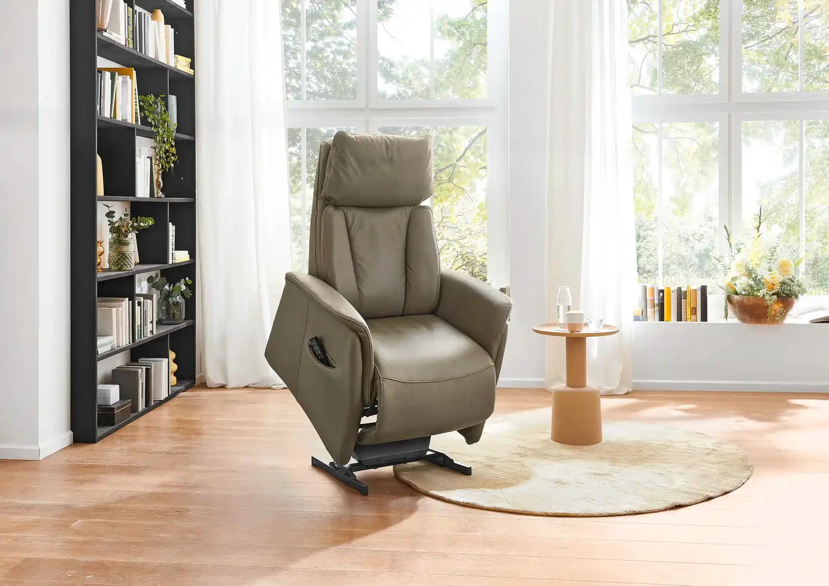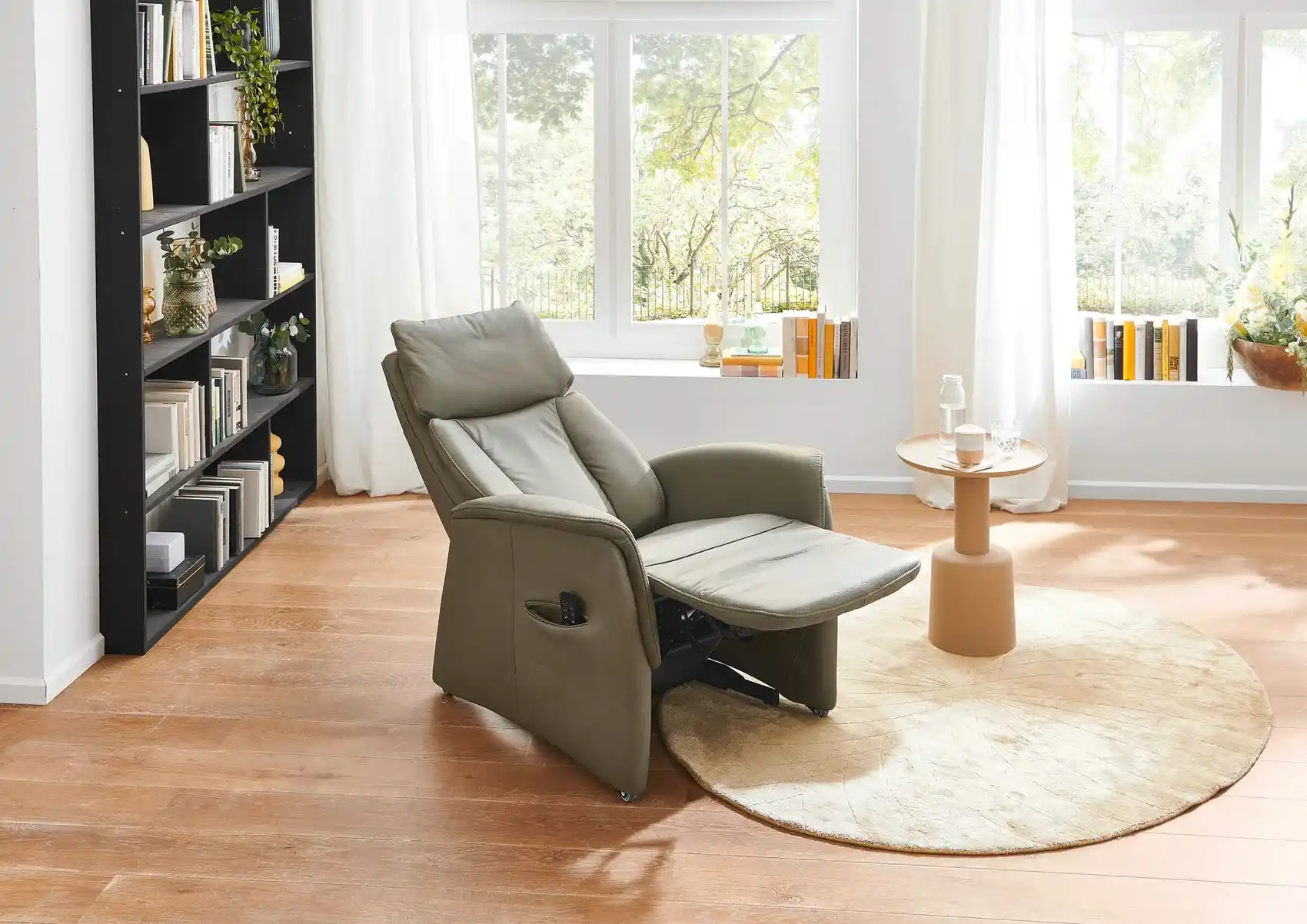 Komfortabler Relaxsessel mit hochwertigem Lederbezug und weichem Sitzkomfort. Rücken- und Fußstütze lassen sich manuell verstellen, sodass Sie Ihre persönliche Lieblingsposition einstellen können.