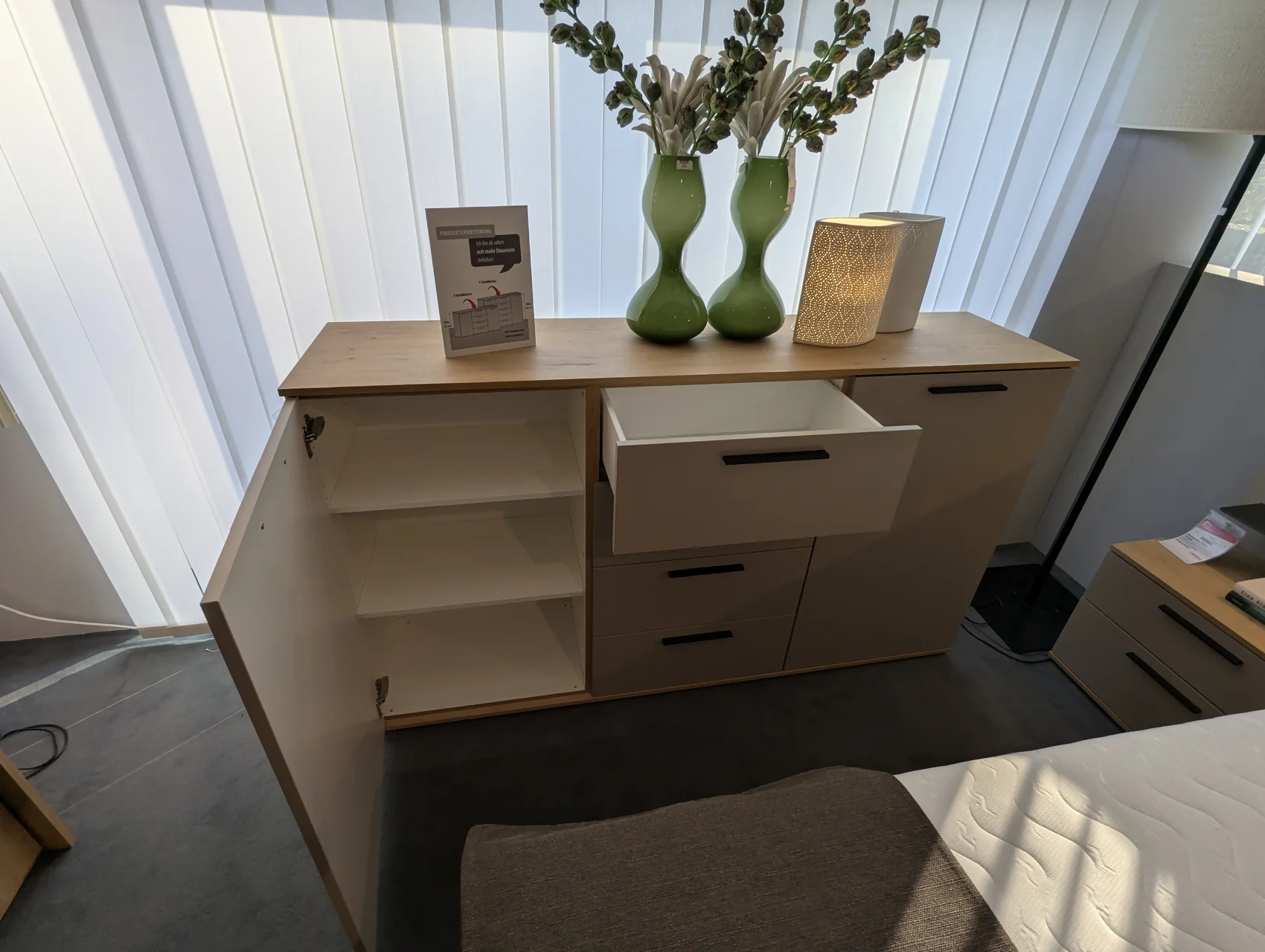 - Ausstattung: 4 Schubkästen, 2 Türen, 180 cm Breite