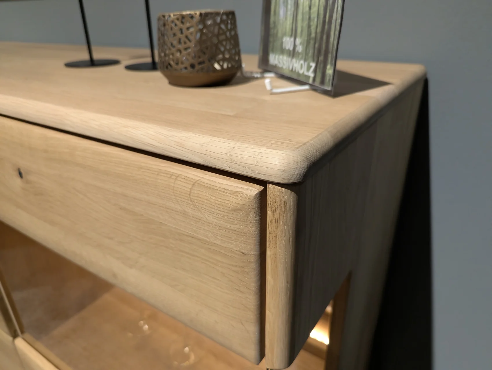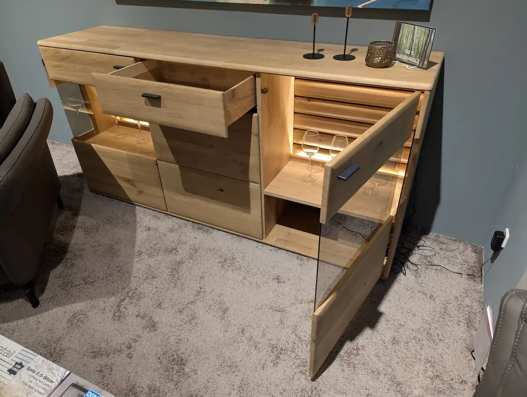 Dieses hochwertige Sideboard überzeugt durch seine natürliche Holzoptik und eine klare, zeitlose Formensprache. Die Kombination aus Ast- und Balkeneiche mit Kristalleiche geölt bringt die charaktervolle Maserung des Holzes besonders schön zur Geltung und sorgt für eine warme, wohnliche Ausstrahlung.