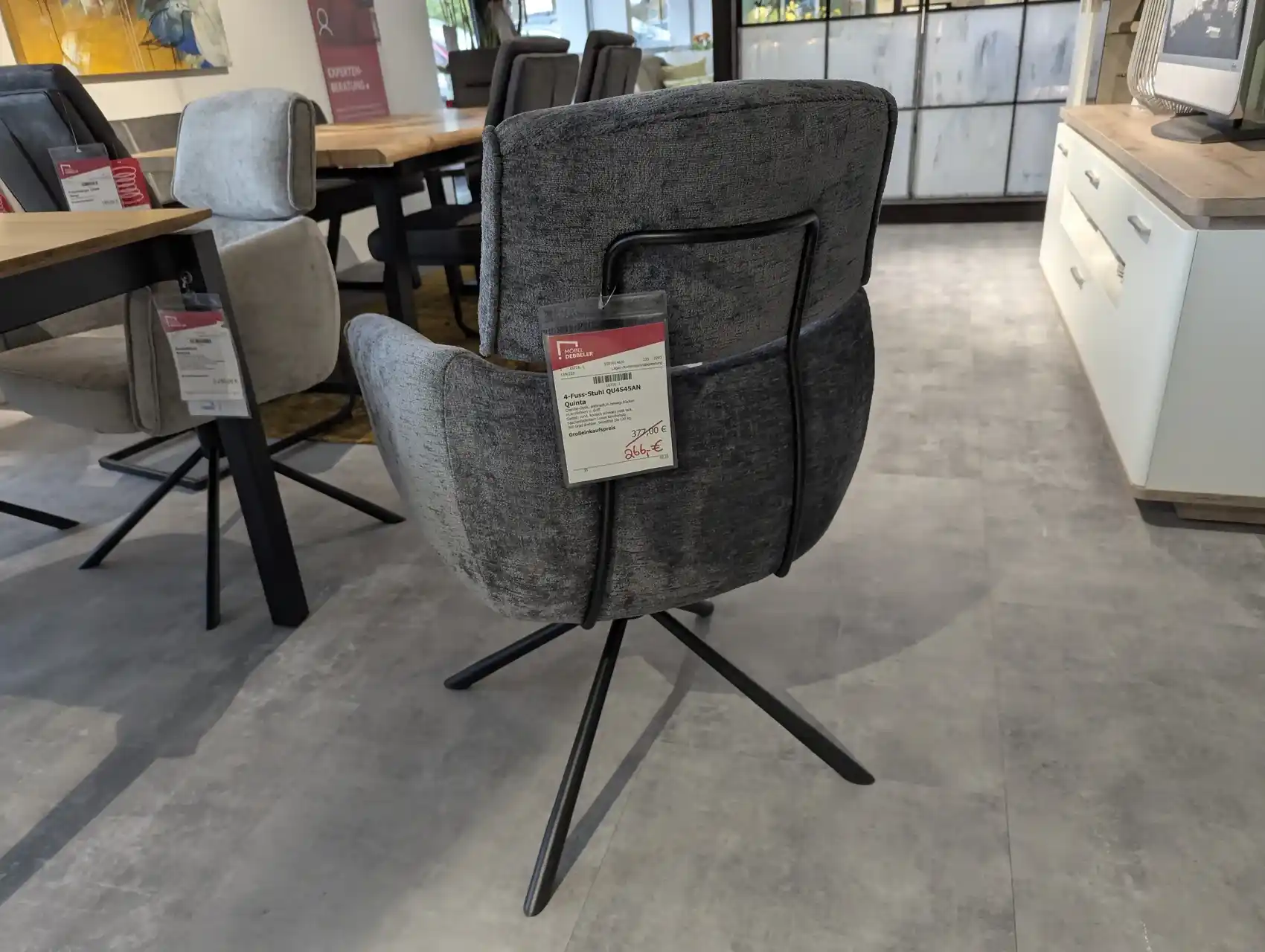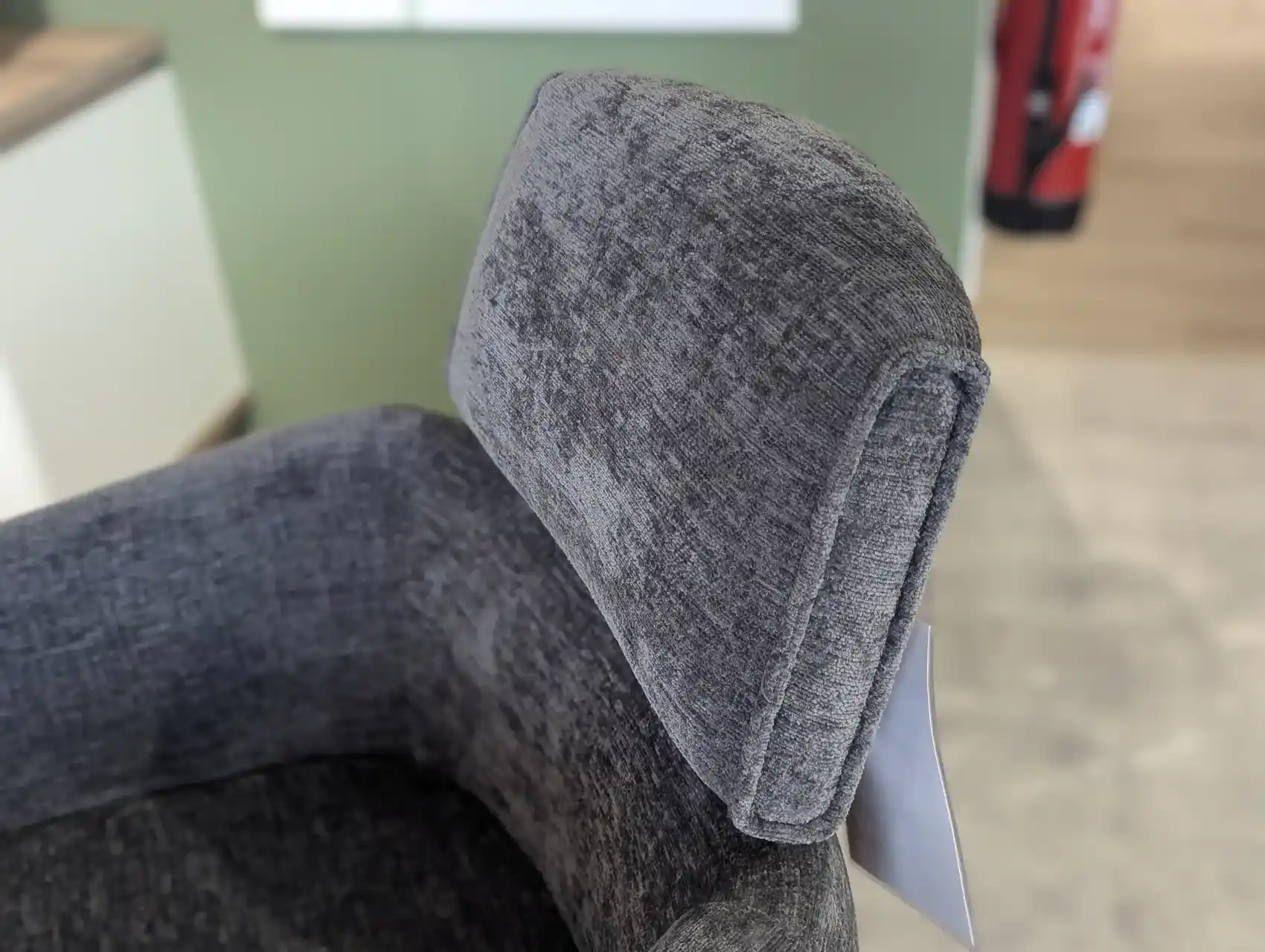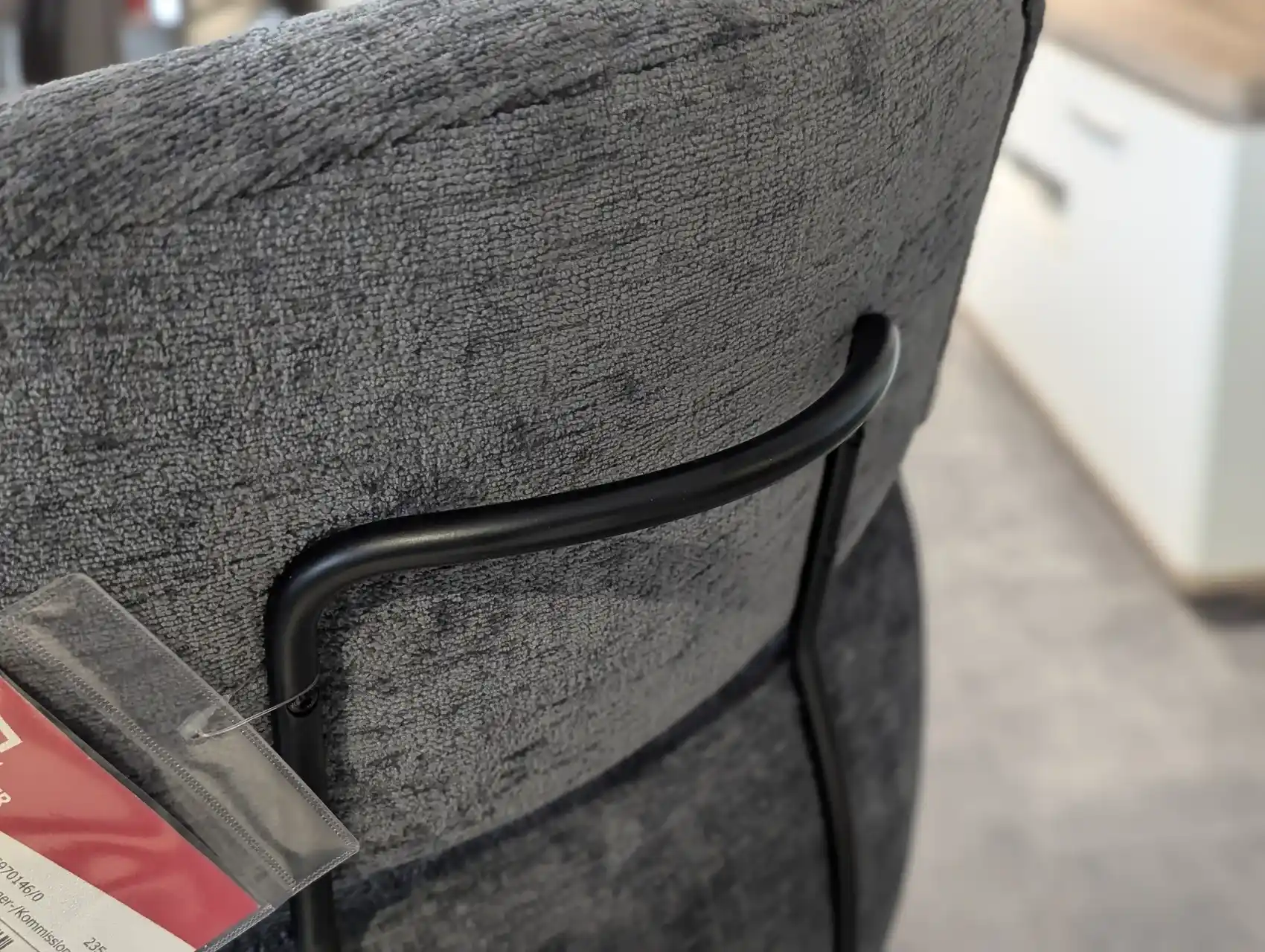 Moderner Stuhl in Chenille-Optik in Anthrazit mit hochwertigem Taschenfederkern-Komfortsitz. Der Stuhl ist 360° drehbar und bietet dadurch flexible Beweglichkeit im Alltag. Die bewegliche Rückenlehne unterstützt zusätzlich den Sitzkomfort und passt sich leicht den Bewegungen an. Das Gestell in runder, konischer Form ist schwarz matt lackiert und sorgt für eine stabile, moderne Basis. Der Stuhl ist bis 120 kg belastbar und für den täglichen Gebrauch ausgelegt.