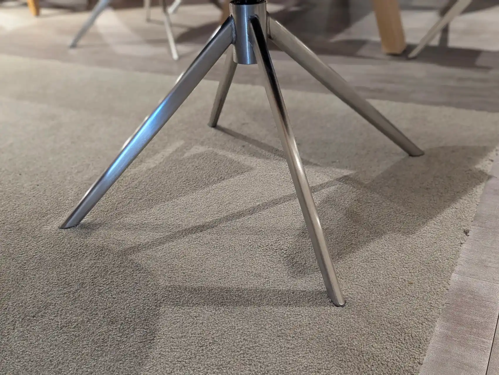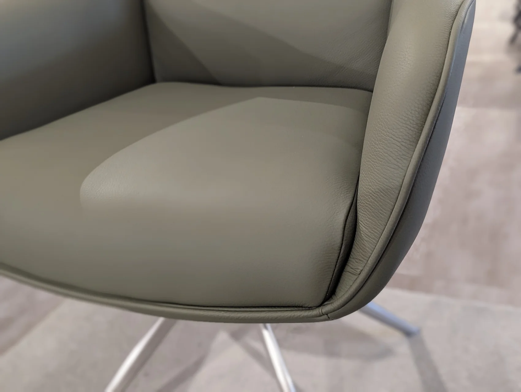 Moderner Stuhl in Leder Olive mit hochwertigem Taschenfederkern-Luxuskomfortsitz. Das Gestell in oval konischer Form aus gebürstetem Edelstahl sorgt für Stabilität und eine moderne, hochwertige Optik. Durch die 360° Drehfunktion ist der Stuhl besonders flexibel im Alltag einsetzbar. Der komfortable Sitz ist auf eine Belastbarkeit von bis zu 120 kg ausgelegt und bietet eine ausgewogene Kombination aus Stabilität und Bequemlichkeit.