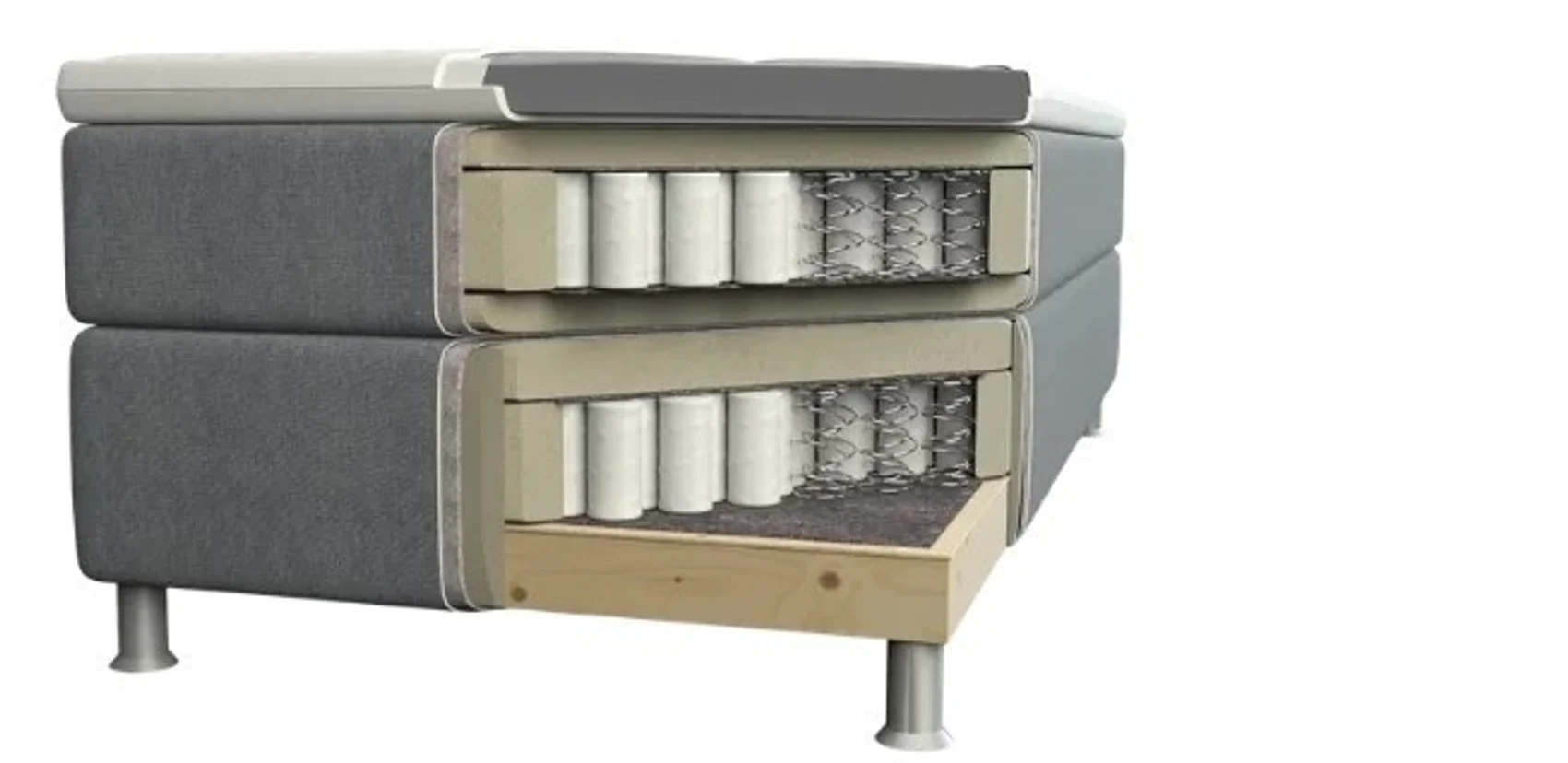 | Besonders komfortabler, mehrschichtiger Aufbau | Klassischer Aufbau mit Lattenrost |