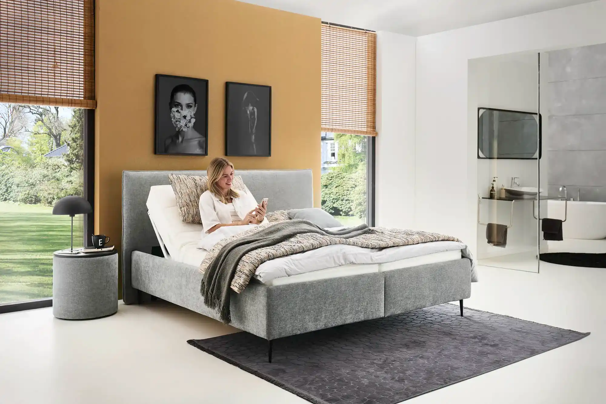 Helle Farben und natürliche Materialien sind genau nach eurem Geschmack? Dann solltet ihr ein Boxspringbett aus Massivholz oder hölzernen Elementen wählen. Mit Baumwollstoff bezogen und mit einer Bettwäsche aus robustem Leinen vervollständigt ihr den Landhaus-Stil. Die Kombination mit gewebtem Stoff oder echtem Leder kreiert einen rustikalen Touch, der bodenständige Behaglichkeit verströmt. Eine Vase mit frischen Blumen darf auf einem schlichten Nachttisch aus hellem Holz auch nicht fehlen.
